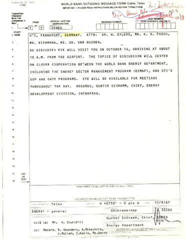 Energy Sector Management Assistance Programme [ESMAP] Donors - Germany - Gesellschaft fuer Technische Zusammenarbeit [GTZ] - Correspondence