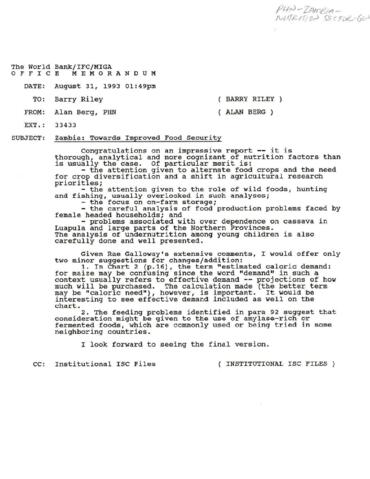 Population, Health and Nutrition [PHN] - Zambia - Nutrition - General - 1993 Correspondence - Volume 1
