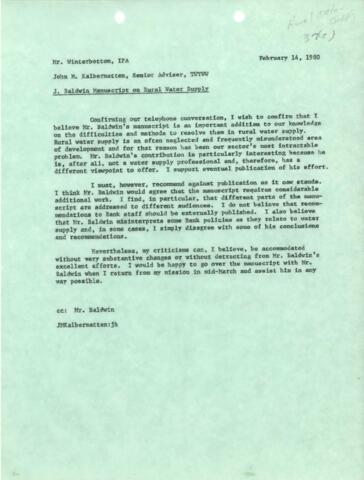 Water and Waste - Rural Water Supply - 1979 / 1980 Correspondence